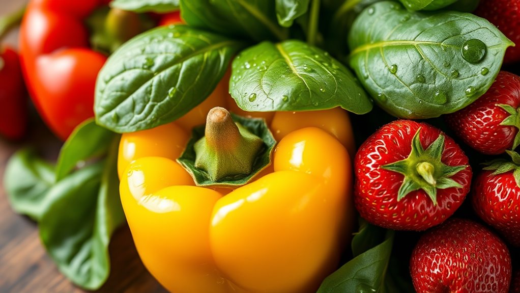 When it comes to maintaining healthy teeth, Vitamin D plays an essential role, mainly because it helps your body absorb calcium, an important mineral for strong bones and teeth. This vitamin is vital for overall dental health, making it one of the top tooth-healthy vitamins. Regular sun exposure or supplementation can boost your Vitamin D levels, enhancing your oral health and preventing decay. Additionally, Vitamin D helps regulate mineral balance vital for tooth integrity, ensuring your teeth remain robust and resilient against decay.
