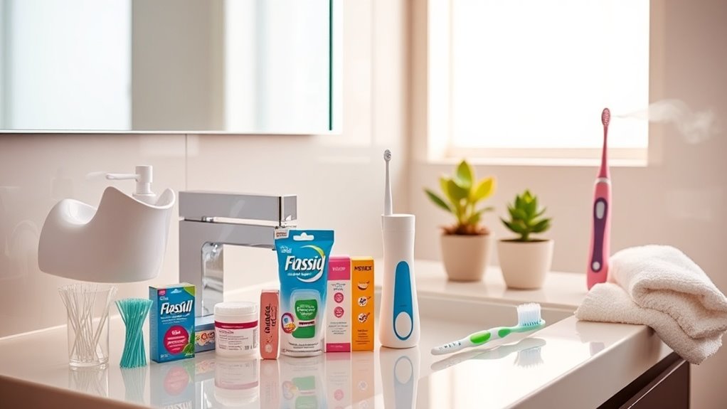 Using fun flossing tools can make the process more enjoyable and motivate you to stick with it. Try flavored floss or colorful flossers that fit your style. Consider using electric flosser alternatives or quirky floss picks that add a bit of joy. When flossing feels less tedious, you’re more likely to commit, helping you maintain better oral hygiene with ease. Early education about dental health fosters lifelong habits, making it essential to introduce fun tools at a young age.