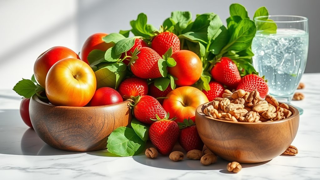 To keep your teeth strong and cavity-free, incorporate leafy greens, crunchy vegetables, dairy products, nuts, seeds, and fruits with high water content into your daily diet. Leafy greens are packed with essential minerals, while crunchy veggies scrub your teeth clean. Dairy offers calcium for strong enamel, and nuts and seeds provide healthy fats. Hydrating fruits nourish your gums. Embrace these tasty options, and you’ll discover even more ways to enhance your dental health!