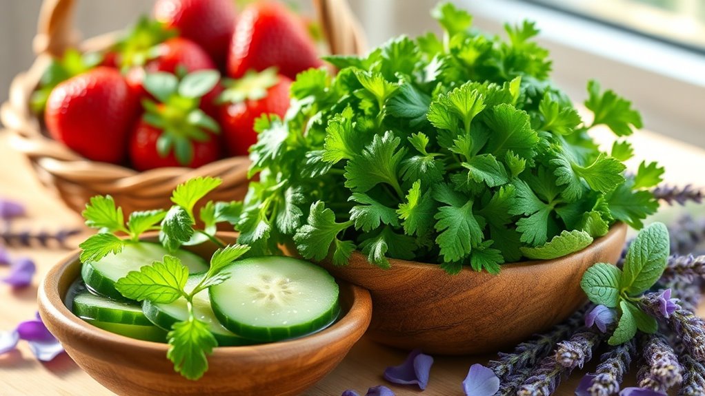 Foods for fresh breath, like apples, carrots, and celery, help stimulate saliva production, which naturally cleanses your mouth. Their high fiber content also scrubs away plaque and food particles, preventing odor-causing bacteria from thriving. Additionally, staying hydrated is crucial, as it supports saliva production and combats dry mouth, a common contributor to bad breath.