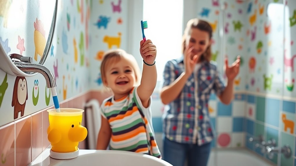 To make brushing fun for kids, why not turn it into a mini dance party? Play their favorite upbeat songs and encourage them to groove while brushing. This not only makes the experience enjoyable but also helps them look forward to brushing. With a little rhythm and fun music, you’ll transform brushing kids’ routine into a lively, memorable event they can’t resist! Additionally, using a brushing playlist can create a special family tradition that enhances the fun.