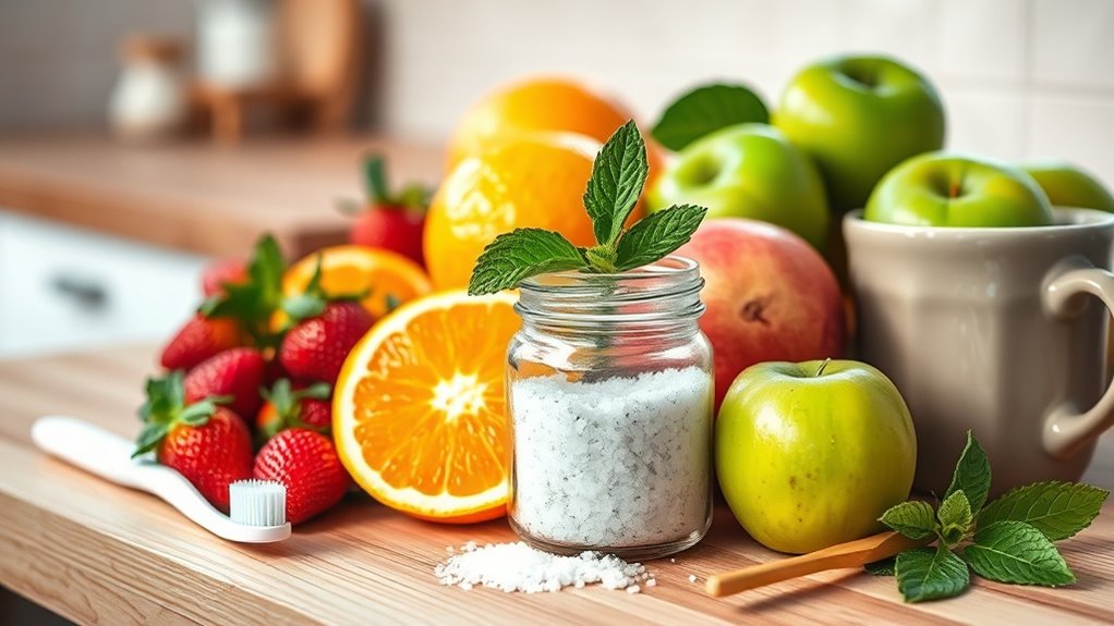 Consider incorporating calcium-rich foods like leafy greens and almonds into your diet to enhance enamel. Clove oil can reduce inflammation and bacterial growth, while rinsing with salt water may help remineralize tooth structure. Additionally, incorporating calcium-rich foods such as dairy can further support healthy tooth enamel.