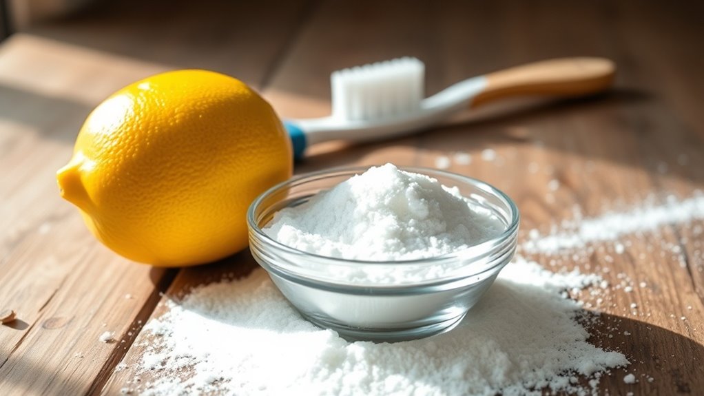 If you’re looking for an effective and natural way to whiten your teeth, a mixture of baking soda and hydrogen peroxide may be just what you need. This combination works by gently removing surface stains while promoting optimal oral health. Simply mix equal parts of both ingredients, apply it to your toothbrush, and brush gently for a brighter, whiter smile. Additionally, the mild abrasiveness of baking soda helps remove surface stains and neutralizes mouth acids, contributing to overall oral health.