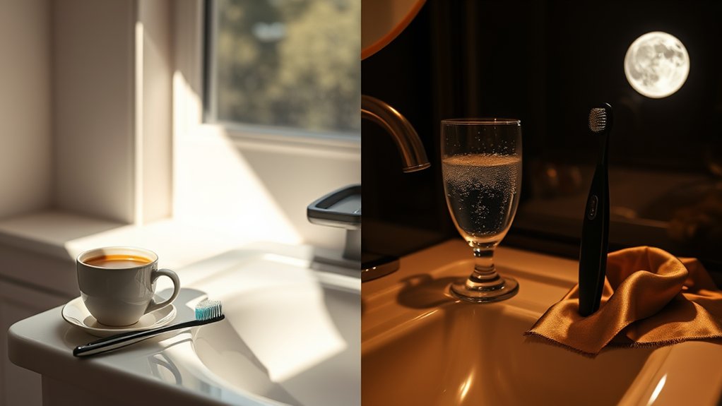 In the morning, brushing helps eliminate this accumulation, reducing your risk of cavities and other oral health issues. Conversely, if you skip brushing at night, bacteria can proliferate and compromise your oral hygiene. Regularly brushing at both times can help control bacterial growth, ensuring a healthier mouth. Knowing when to brush can make a meaningful difference in your dental health. Additionally, maintaining good oral hygiene is crucial for preventing halitosis and promoting fresh breath.