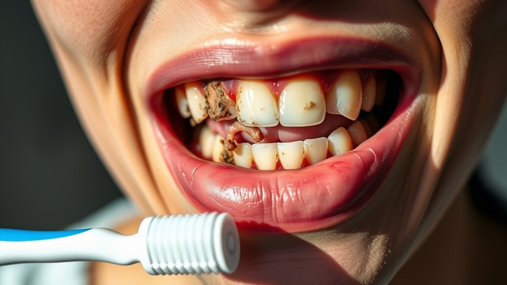 Poor oral health can seriously affect your overall well-being. It allows harmful bacteria into your bloodstream, increasing your risk of heart disease and diabetes complications. Look out for signs like swollen gums, bad breath, or tooth sensitivity; these indicate it’s time to take action. Brushing twice daily, flossing, and visiting your dentist regularly can make a big difference. If you’re unsure about your oral health, there’s more to discover that could help protect you.