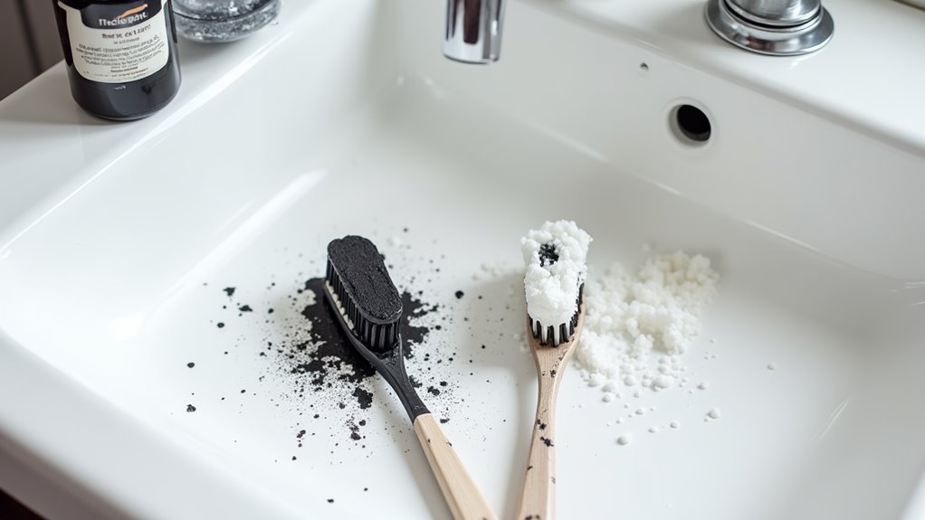 However, you’ll want to understand the charcoal toothpaste myth that’s been circulating. While charcoal can remove surface discoloration, it won’t change your teeth’s natural color or penetrate deep stains. The abrasive nature of charcoal particles might actually damage your enamel if used too frequently. Think of it like sandpaper – effective for surface cleaning but potentially harmful with excessive use.