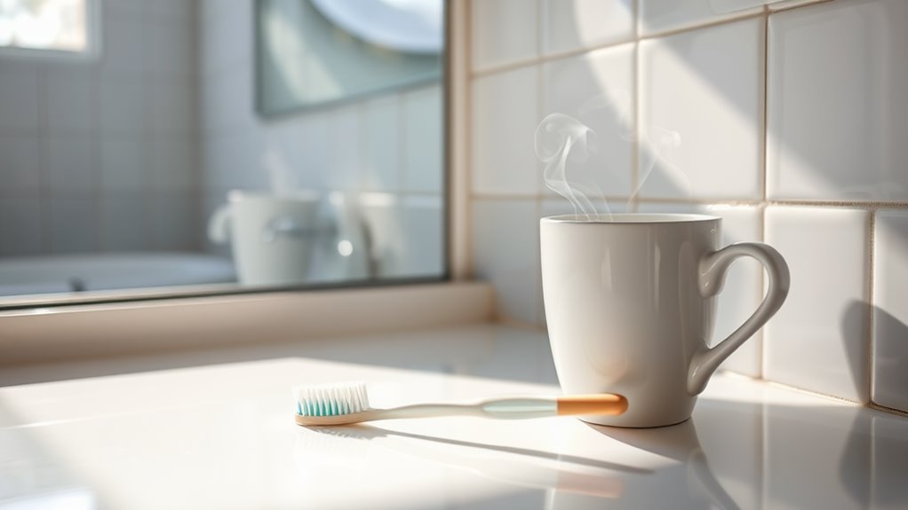While you might love your morning cup of coffee, it’s essential to understand how it impacts your tooth enamel. Coffee’s acidity can weaken enamel, making teeth more susceptible to decay. To minimize this effect, consider your brushing timing. Waiting at least 30 minutes after drinking coffee allows your saliva to neutralize acids, helping protect your enamel and maintain your dental health. Furthermore, acidic drinks like coffee can encourage harmful bacteria growth, increasing the risk of tooth decay.