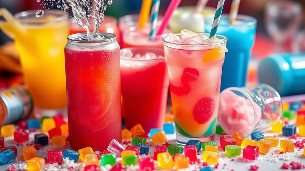 If you want to protect your child’s teeth, steer clear of sugary sodas, fruit juices, sports drinks, flavored milk, and energy drinks. These drinks are packed with hidden sugars and acids that erode enamel and promote cavities. Even iced teas and lemonades can be acidic, while sweetened coffee drinks add caffeine to the mix, risking even more dental damage. Don’t let your child fall victim to these sugary traps—there’s more valuable information ahead to help you make healthier choices!