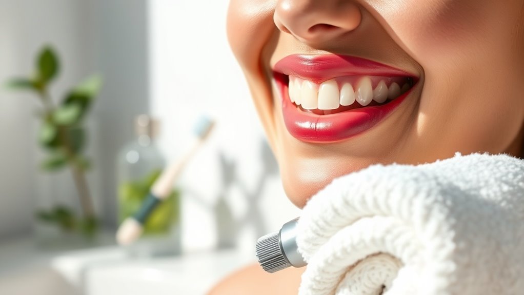 Brushing twice a day and flossing daily remove plaque and food particles, preventing stains. Additionally, using an antimicrobial mouthwash can reduce bacteria contributing to discoloration. Regular dental check-ups ensure you’re on track and help address any issues that might hinder your whitening progress. Incorporating a morning brushing routine can also boost saliva production, which helps strengthen enamel and maintain a brighter smile.