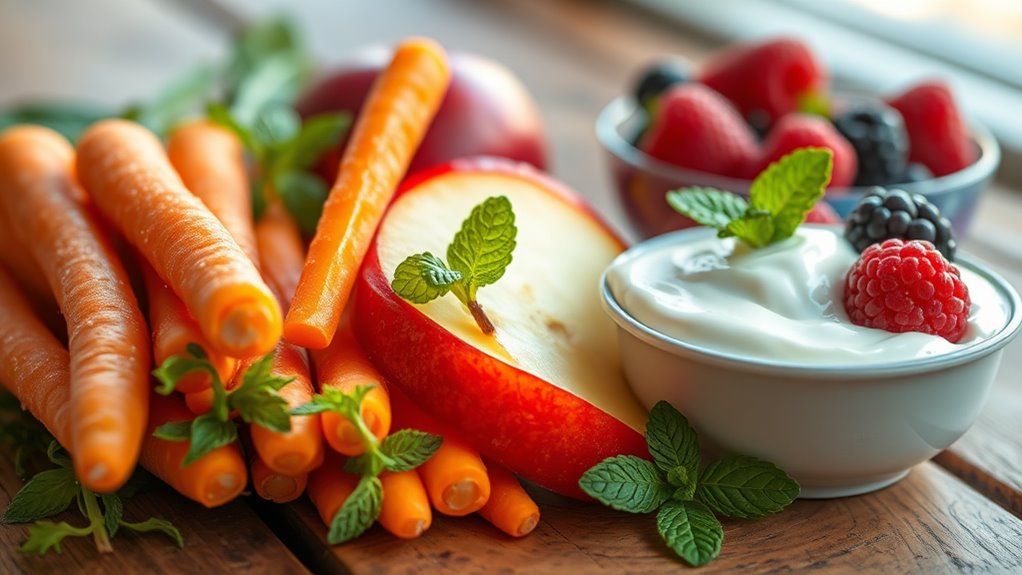 While many snacks might be tempting, incorporating dairy delights into your child’s diet is a smart choice for strong, healthy teeth. Cheese, yogurt, and milk not only provide essential calcium but also help neutralize acids in the mouth. This reduces the risk of cavities and keeps gums healthy. Plus, kids often love these tasty options, making dental health enjoyable! Additionally, the proteins in cheese create a protective film around teeth that helps combat harmful bacteria.
