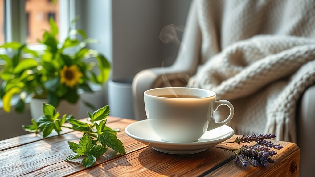 As you sip your tea, feel the tension melt away, creating a sense of belonging in your own peaceful space. This little ritual can be a warm embrace before your dental visit, making the experience a bit easier. Incorporating breathing techniques for calmness can further enhance your relaxation during this time.
