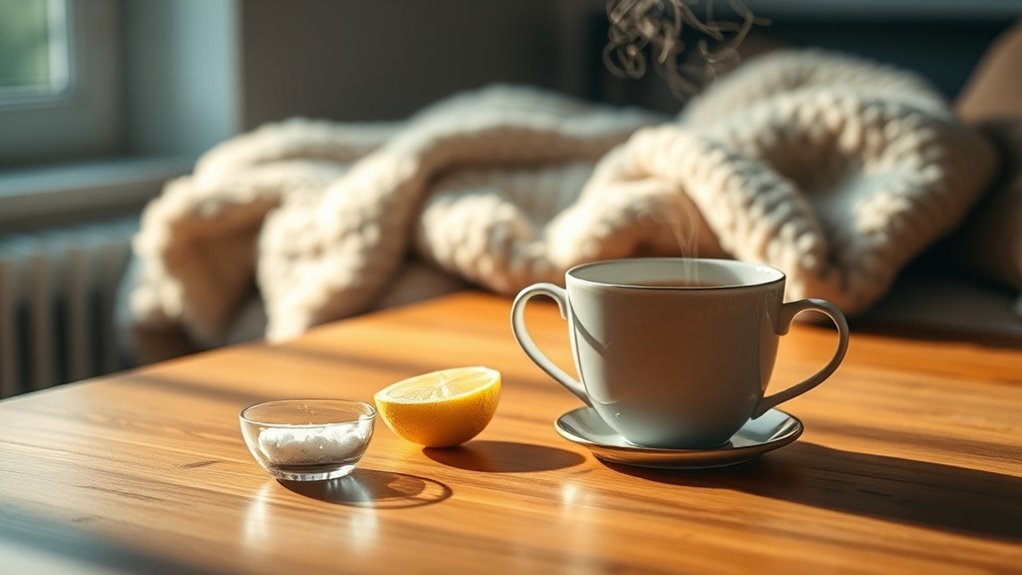 2. Saltwater rinse – Mix a teaspoon of salt in warm water and swish.