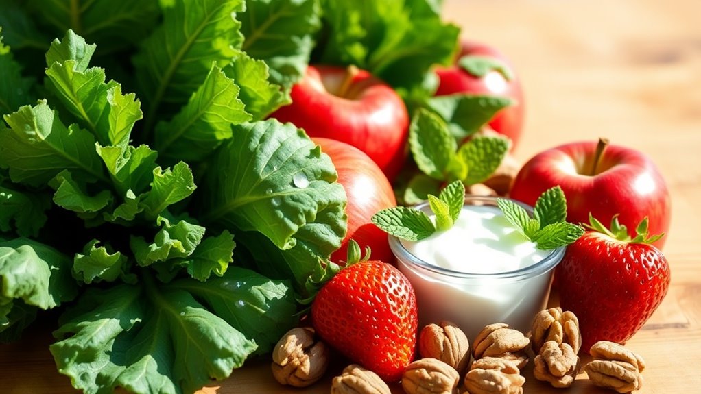 Nuts and seeds are excellent additions to your diet when it comes to promoting healthy gums. They’re rich in essential nutrients like vitamin E, magnesium, and healthy fats, which help reduce inflammation and support gum health. Chewing these crunchy snacks also stimulates saliva production, helping neutralize harmful bacteria. Incorporating a variety of nuts and seeds can greatly benefit your oral health, as they also provide healthy fats that support overall dental strength.