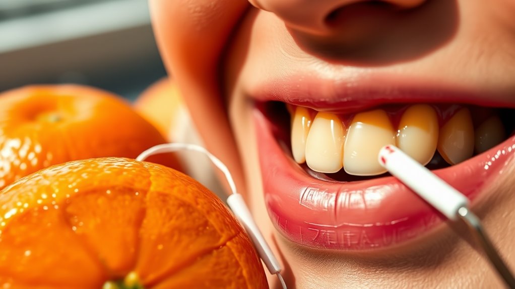 If you’re struggling with yellow teeth, coffee, red wine, and berries might be the culprits. Coffee introduces tannins that cling to your enamel, while red wine’s pigments can leave stubborn stains. Berries, though delicious, can also discolor your smile. To combat these effects, rinse your mouth with water after consuming these foods, and consider using a straw for drinks. Want to know more tips for maintaining your bright smile? Keep exploring!